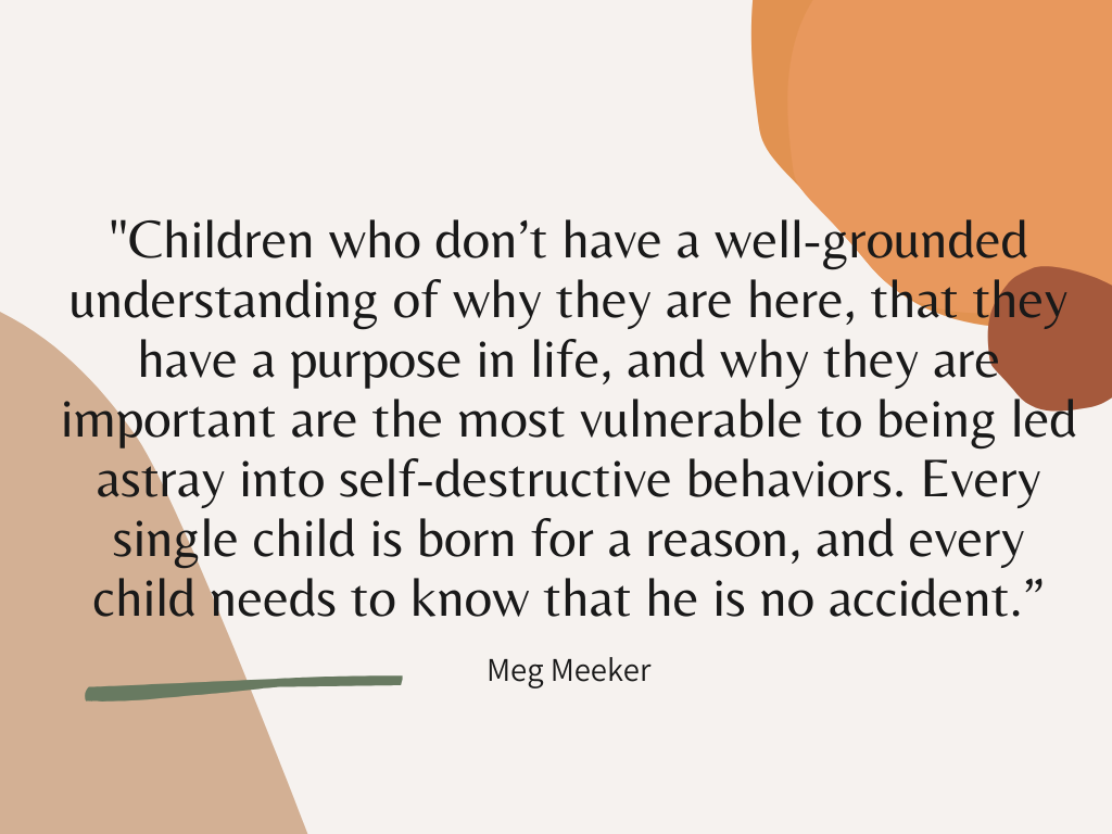This is where a child has the space and time to learn about their background, their heritage, their intrinsic value and purpose (irrespective of anything they know or can do). This includes knowing what’s best for their bodies, minds, and spirits. In our family, this would also include a growing understanding of how God has uniquely wired and gifted them.