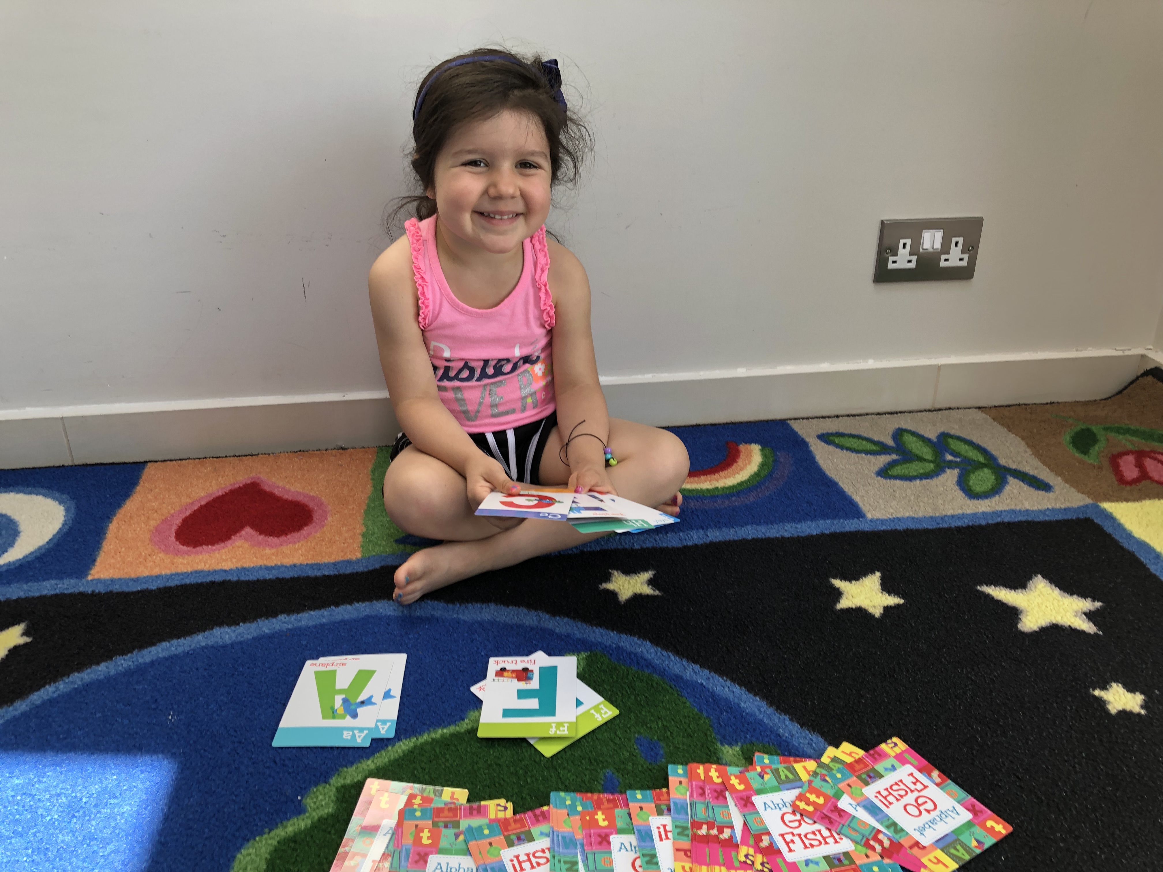 As soon as I see signs of motivation to read, I begin to be a bit more intentional with my guidance. Our youngest has been into writing “notes” to people lately (because she sees her older siblings doing it). She will write some “letters” then ask me what they say. The other day she told me that fish was “gr-, gr-, gross”. She enjoys playing Go Fish ABCs and other games with her dad. These are all signs that she is curious about letters, sounds, words and how they work together.