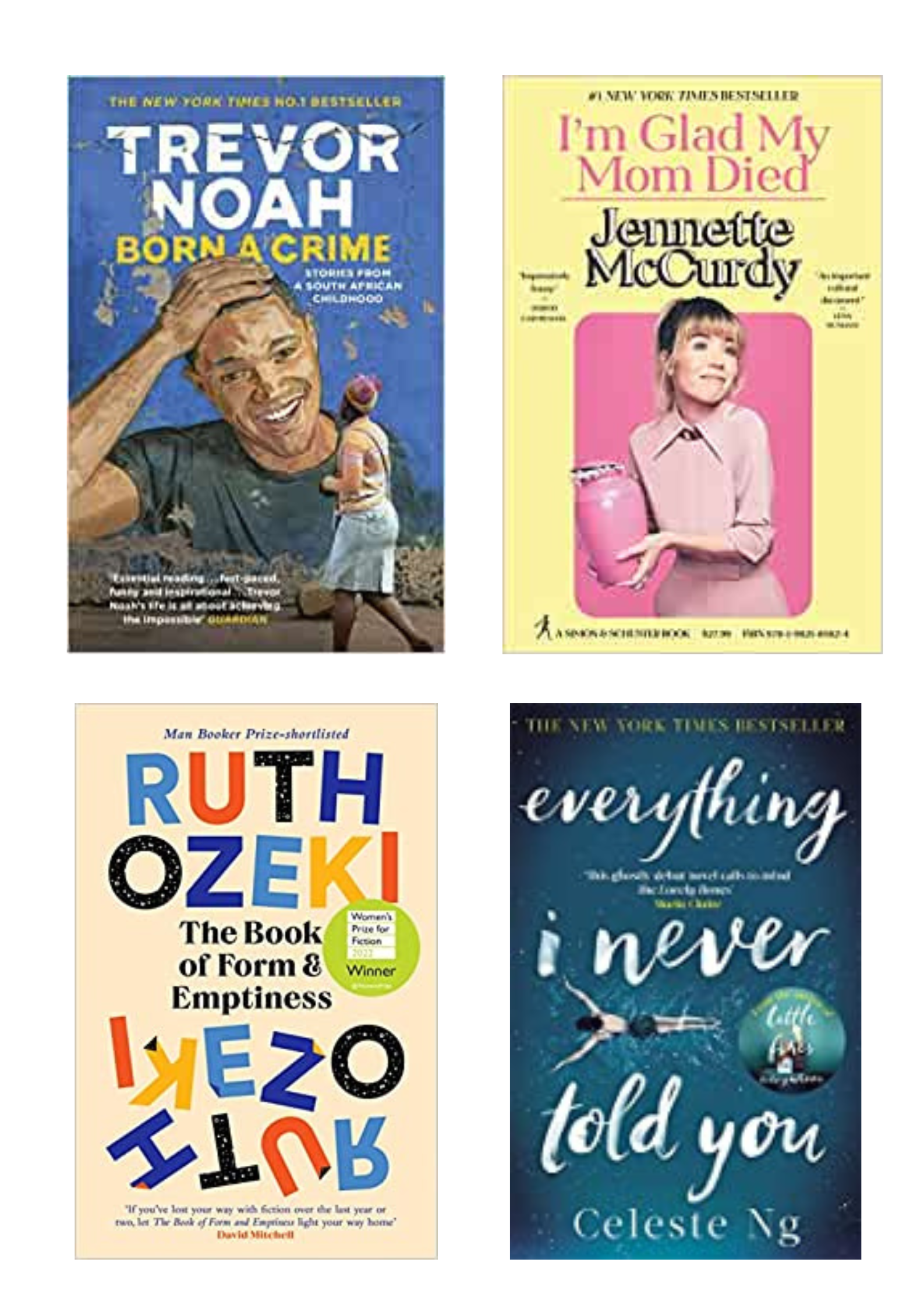 - I’m Glad My Mom Died by Jennette McCurdy: I didn’t love this book, but it provided lots of food for thought. Trying to live vicariously through our children is never a great idea.