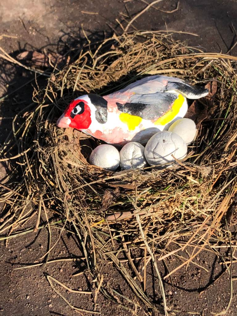 The kids helped me tell a story about a Goldfinch that was trapped and chained by his ankle. He had to depend on his friends, Kingfisher and Peacock to help set him free.