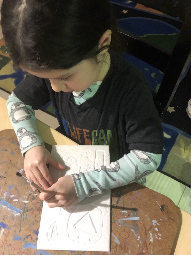 We used Claude Monet’s “The Magpie” to create a story called “Magpie and the Magic Marble”: