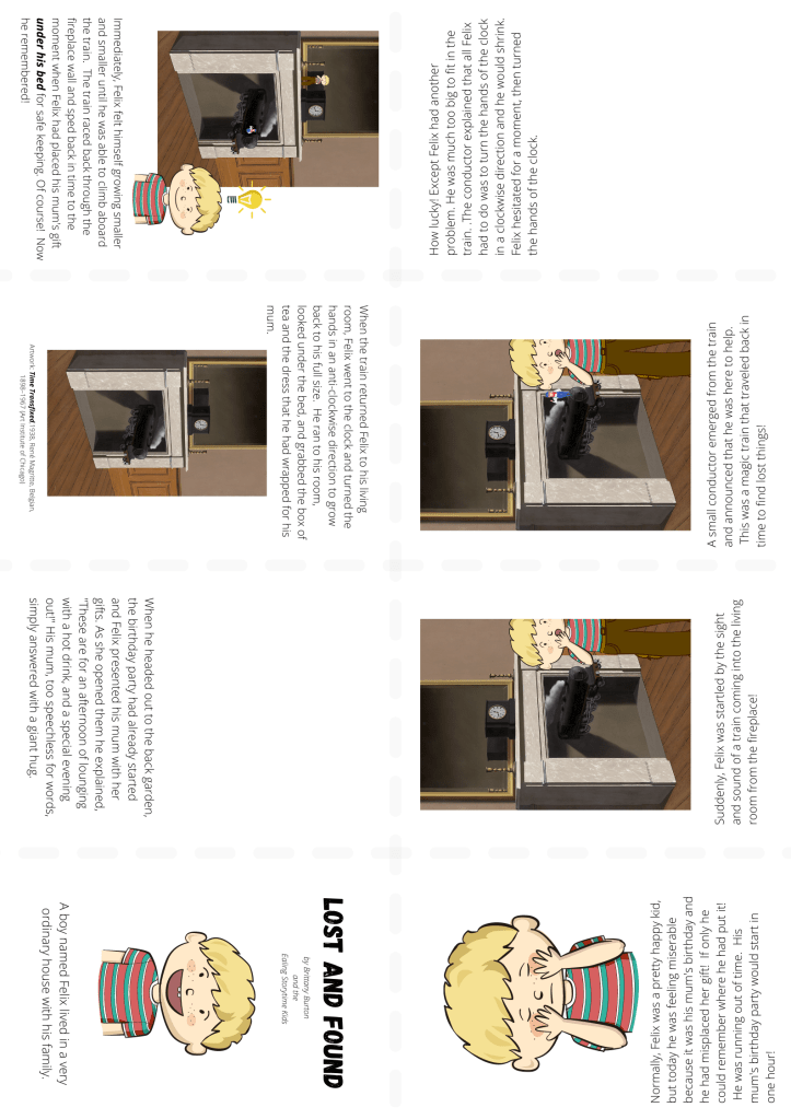 Today we created our own story incorporating René Magritte’s Time Transfixed called, Lost and Found. Use the directions below to create your book. Children can add their own pictures of the “clock” and “mum’s gifts” on the pages that are missing illustrations. Enjoy!