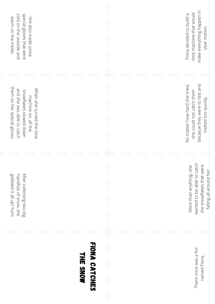 This week we created a story together called, Fiona Catches the Snow! Follow the directions to create your own “book” and add the illustrations.